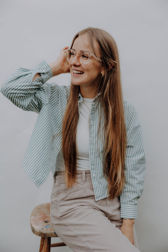 Ein Fotoshooting mit Tageslicht. Diese Bilder sind in dieser Saison in Berlin entstanden und ich baute dafür im Freien das ganze Fotostudio auf. Ein heller Hintergrund und das weiche Licht passen perfekt zur künftigen Website von Lorelle. Wir sprachen uns vorab ab, welche Kleidung am besten zu ihrem Design passt und sie entschied sich für eine helle Kombination, die ihr sehr schmeichelt. Innerhalb von 30 Minuten fotografierten wir zwei Outfits und ließen somit diese tollen Businessporträts entstehen.
